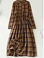 Mujer Vestido Midi Vestido de una línea Casual Diario Ajuste regular Plaid Manga 3/4 Cuello Barco Azul Piscina Rojo Marrón Primavera Otoño Invierno