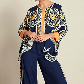 caftán de satén sedoso color orquídea azul océano
