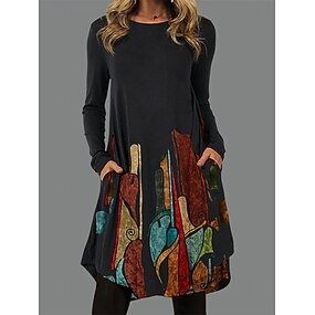 Mujer Vestido Midi Vestido tubo Vestido estilo camiseta Vestido de una línea Vestido deportivo Vacaciones Casual Boho Diario Ajuste regular Graphic Geométrico Pata de gallo Manga Larga Cuello Barco