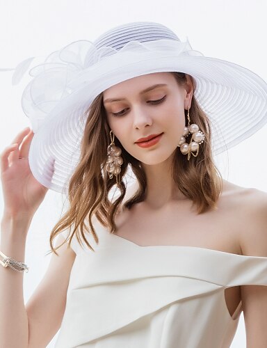 Elegante sombrero Derby de organza para mujer, sombrero de ala ancha para el sol, para bodas, fiestas de té, tocado.