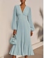 Mujer Vestido Midi Vestido de Fiesta Vestido informal Vestido de raso Elegante Moda Moderno Exterior Vacaciones Noche Ajuste regular Plano Manga Larga Escote en Pico Azul Piscina Verano Primavera
