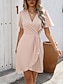 Mujer Vestido informal Vestido Midi Frunce Cita Vacaciones Ropa de calle Básico Escote en Pico Manga Corta Negro Rosa Verde Oscuro Color