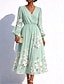 Mujer Vestido Midi Vestido ajustado y acampanado Casual Vestidos semi formales Oficina Cita Ajuste regular Floral Graphic Manga Larga Escote en Pico Azul Piscina Rosa Morado Verde Trébol Verano