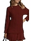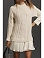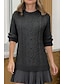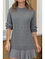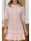 Mujer Vestido de suéter Casual Suave Color puro Estriado Cuello Barco Volante De Punto Manga Larga Tops regulares Tejer Exterior Diario Fin de semana Negro Rosa Otoño Invierno