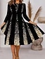 Mujer Vestido Midi Vestido Estampado Moda Moderno Oficina Diario Festivos Ajuste regular Graphic Manga Larga Cuello Barco Rosa rubor Blanco Dorado Primavera Otoño Invierno