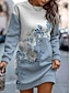Mujer Mini vestido Vestido de cambio Casual Festivos Noche Fin de semana Ajuste regular Floral Graphic Manga Larga Cuello Barco Rosa Azul Piscina Morado Verde Trébol Primavera Otoño Invierno
