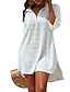 Mujer Negro Blanco Verano Primavera Mini vestido Vestidos inspirados en el lino Vestido blanco Vestido informal Vacaciones Básico Moderno Diario Fin de semana Holgado Plano Escote en Pico