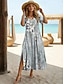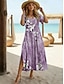 Mujer Vestido largo maxi Vestido informal Vestido de una línea Vestido Estampado Moda Moderno Exterior Playa Vacaciones Ajuste regular Floral Manga Corta Escote en Pico Azul Piscina Rosa Morado Gris