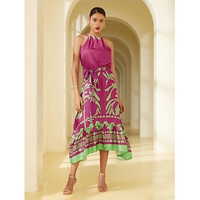 Mujer Vestido informal Vestidos Peplum Vestido Midi Verde Trébol Sin Mangas Manga Corta Impreso Floreciente Volante Floral Lazo delantero Verano Primavera verano Asimétrico Elegante Romántico S M L