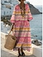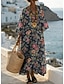 Mujer Vestido maxi Vestido de cambio Vacaciones Casual Playa Noche Holgado Floral Graphic Manga Larga Escote en Pico Azul marinero Rosa Beige Verano Primavera