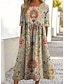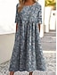 Mujer Vestido Midi Vestido informal Vestido de flores Elegante Playa Ajuste regular Floral Hoja Media Manga Cuello Barco Azul Piscina Naranja Caqui Beige Verano Primavera