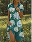 Mujer Vestido Midi Vestido de verano Vestido de una línea Vacaciones Casual Boho Playa Noche Estándar Floral Graphic Manga Corta Escote en Pico Azul Piscina Verde grisáceo Blanco Verde Claro Verano