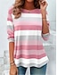 Mujer Camiseta Estampado Graphic Geométrico A Rayas Vintage Moda Elegante Manga Larga Cuello Barco Tops regulares Diario Rosa Verano Primavera