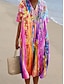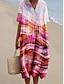 Vestido midi de mujer con escote en V de manga larga kaftán ligero corte holgado vestido en A casual bohemio para salir gráfico geométrico de rayas manga larga escote en V naranja rojo negro amarillo