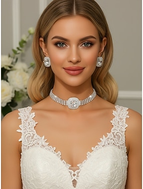 Conjunto de collar y aretes de perlas de imitación de aleación para mujer, colores dorado y plateado, diseño elegante con detalles de cristal, perfecto para bodas y cenas formales.