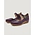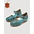 Zapatos planos azules de mujer con estampado floral calado – zapatos planos de cuero vintage cómodos con correa ajustable para viajes y fiestas en el jardín. &uso diario