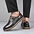 Zapatos casuales sin cordones con puntera de mocasín para hombre: zapatillas de suela suave cosidas a mano con diseño de parche en contraste para conducir, la oficina y el uso diario.