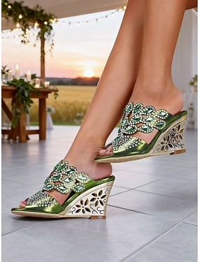 Sandalias de cuña con diamantes de imitación para mujer: elegantes zapatos de madre de la novia con aberturas y sin cordones para un estilo rústico de granero. &bodas en granjas rurales