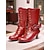 Botines rojos de mujer con lazo dorado - Botas festivas de tacón alto para mujer - Perfectas para fiestas navideñas, reuniones navideñas y salidas nocturnas
