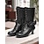 Botas vaqueras negras para mujer con detalles bordados y tacón grueso, calzado elegante para rodeos campestres y festivales de música.