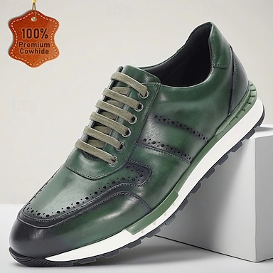 Zapatillas brogue de piel auténtica verde para hombre con detalle de punta de ala y suela de goma, elegantes zapatos de vestir informales para viajes de negocios y uso diario.