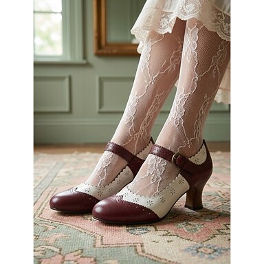 Zapatos Mary Jane color crema con tiras en T y detalles brogue para mujer: zapatos de tacón estilo vintage de los años 30 para fiestas, bodas y conjuntos retro.