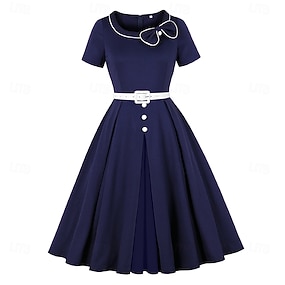 Retro Antiguo 1950s Rockabilly Vestidos Vestido swing Mangas cortas Disfraz Mujer Carnaval Mascarada Ropa Cotidiana Despedida de Soltera Adulto Vestido
