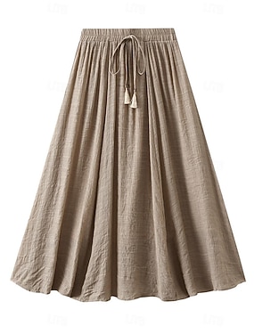 Mujer Moda Casual Midi Alta cintura Faldas Color sólido Correa Casual Diario Fin de semana Azul Piscina Negro Rosa Caqui Verano Algodón y lino