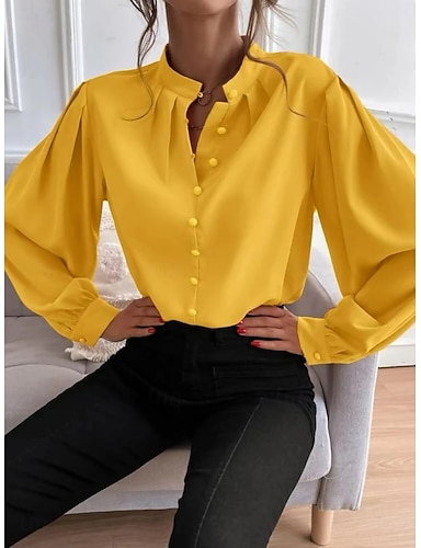 Mujer Camisa casual Abotonar la camisa Blusa Botones Color sólido Diario Elegante Básico Manga Larga Cuello Vuelto Tops regulares Diario Exterior Ropa de calle Azul Piscina Negro Blanco Amarillo Rosa