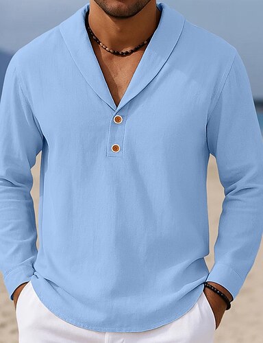 Hombre Camisa casual Camisa de lino y algodón Abotonar la camisa Color sólido/liso Vacaciones Calle Negro Blanco Rosa Azul cielo Manga Larga Diseño Todas las Temporadas Ropa Botones