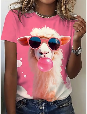 Mujer Camiseta Estampado Ombre Graphic Animal Vintage Elegante Clásico Manga Corta Cuello Barco Escote Redondo Tops regulares Diario Fin de semana Rosa Verano Primavera Otoño