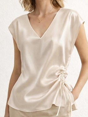 Mujer Satén Camiseta Camiseta superior Correa División lateral Lado fruncido Color sólido Elegante Casual Sin Mangas Casquillo Escote en Pico Tops regulares Diario Fin de semana Azul Piscina Perla