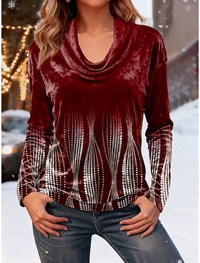 Mujer Sayo Tee Estampado A Capas Graphic Geométrico Elegante Vintage Moda Manga Larga Cuello vuelto holgado Tops regulares Diario Noche Fin de semana Vino Azul Real Morado Verde Trébol Otoño
