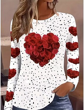 día de San Valentín Mujer Camiseta Estampado Corazón Graphic Moda Elegante Clásico Manga Larga Cuello Barco Escote Redondo Tops regulares Diario Fin de semana Blanco Rojo Verano Primavera Otoño