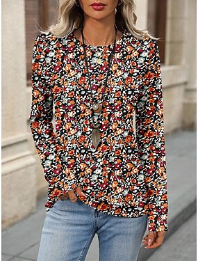 Mujer Sayo Tee Estampado Floral Graphic Elegante Vintage Moda Manga Larga Cuello Alto Tops regulares Diario Noche Fin de semana Negro Primavera Invierno