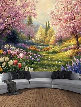 Un camino de plantas de jardín, paisaje, tapiz colgante, arte mural, tapiz grande, decoración, foto de fondo, alfombra, cortina, decoración del hogar, dormitorio, sala de estar