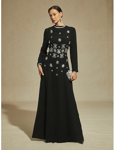 Mujer Vestido maxi Vestido tubo Elegante Formal Vestidos semi formales Fiesta de Noche Lentejuelas Encaje Ajuste regular Floral Manga Larga Cuello Barco Negro