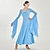 Vestido de baile de salón azul degradado para mujer con mangas acampanadas, cintura con cinturón y escote en V: perfecto para latino, tango y ropa de actuación.