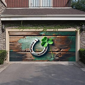 Día de San Patricio Cubierta de puerta de garaje Gran colgante Herradura Vintage Rústico 3D Fiesta Al Aire Libre Fondos de disparos Puerta de Entrada Decoración del hogar