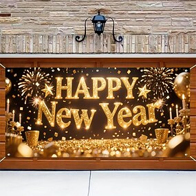 Año Nuevo tapiz Cubierta de puerta de garaje Gran colgante Feliz año nuevo 2026 Fuegos artificiales Estilo lindo 3D Fiesta Al Aire Libre Vacaciones Fondos de disparos Yarda Decoración del hogar