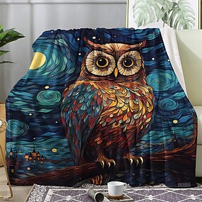 Día de la Independencia tapiz Mantas de vellón Manta para sofá Búho Regalo Animal Clásico 3D Sofá Cama Manta decorativa Manta cálida Decoración del hogar