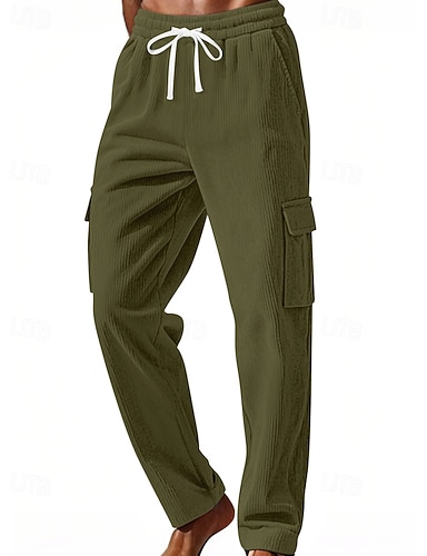 Hombre Pantalones cargo Pantalones Pantalones de Pana Multi bolsillo Cintura elástica con cordón Color sólido Resistente al Viento Listo para vestir Exterior Diario Acampada y Senderismo Ropa de