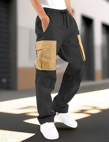 Hombre Pantalones cargo Ropa técnica Bolsillo Correa Cintura elástica Plano Comodidad Transpirable Exterior Diario Noche Moda Casual Negro Marrón