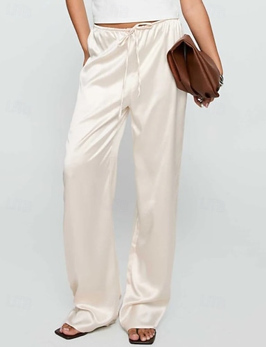 Mujer Pantalones de satén Chinos Corte Recto Ropa de calle Casual Longitud total Media cintura Plano Correa Cómodo Rígido Diario Exterior Vacaciones Marfil Otoño Invierno Holgado