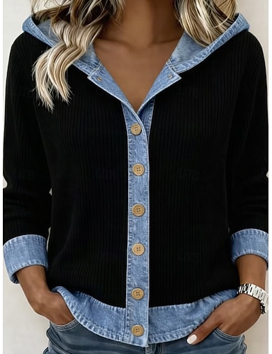 Mujer Chaqueta casual Chaqueta con capucha Mantiene abrigado Cómodo Cremallera Bolsillo Botones Casual Bloque de color Hogar Exterior Vacaciones Ropa Cotidiana Regular Con Capucha Holgado Manga Larga