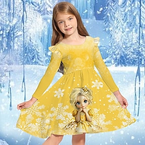 Girls ' 3D Graphic Caricatura Vestido Vestido de volante Manga Larga Verano Primavera Vacaciones Diario Festivos Princesa Hermosa Dulce Niños 4-12 años Vestido informal Vestido de una línea Hasta la