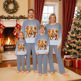 Mirada familiar Navidad Pijamas navideños familiares Pijamas Conjuntos familiares Graphic Los hombres de pan de jengibre Regalos de Navidad Estampado Gris Manga Larga Diario Trajes a juego