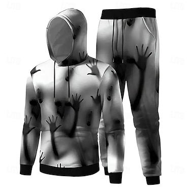 Conjunto de Sudadera 3D para Hombre de 2 piezas Sudadera con Capucha Sudadera de Manga Larga Pantalones Largos con Capucha Casual Horror Athleisure Impresión 3D Primavera Otoño Invierno Gris