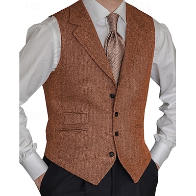 Hombre Chaleco Vacaciones Fiesta Negocio Moda Casual Primavera Otoño Botones Bolsillo Tejido de lana Cómodo Color sólido Recto 1 botón Cuello plano Ajuste regular Marrón Verde Ejército Gris Chaleco
