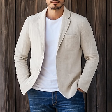 Hombre Chaqueta ligera Chaqueta americana Chaqueta de lino Formal Oficina Casual Minimalista Verano Primavera Algodón y lino Color sólido Confortable Botonadura Simple Chaqueta de sport Blanco Beige